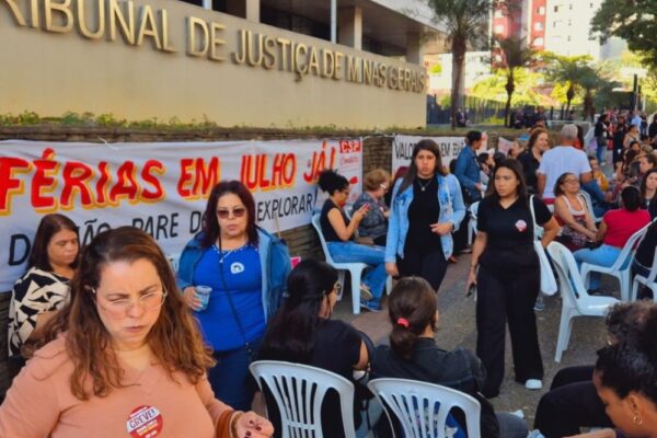 Uma manifestação organizada por professores da rede municipal de ensino tomou conta da Avenida Afonso Pena, em frente ao Tribunal…
